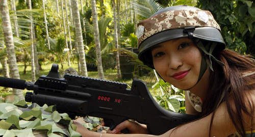 世界休閑小姐身著迷彩進行真人CS訓(xùn)練-使用銘恒真人CS裝備